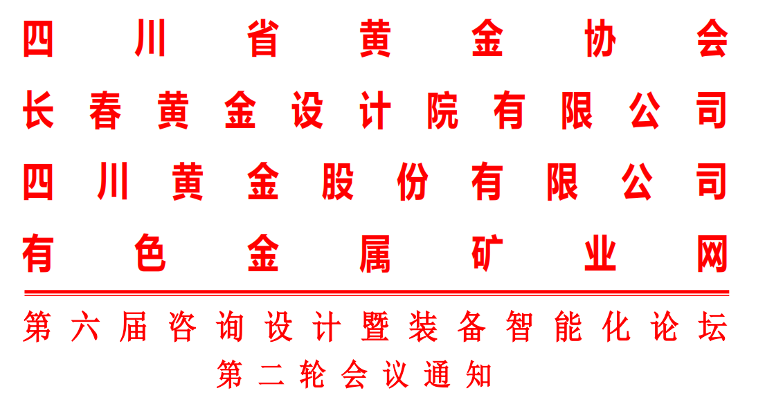 近年来,矿业企业咨询设计及装备智能化的需求,开展了咨询设计单位、矿建单位、矿业总包单位、矿业装备企业智能化改造,显著提高了我国矿山企业的智能化水平。为了交流咨询设计,矿业装备智能化取得的新成就,助力矿业各单位之间的融合发展,更好的利用智能化装备,服务现代化矿山企业咨询设计,降本增效,四川省黄金协会,长春黄金设计院有限公司,四川黄金股份有限公司、有色金属矿业网将于 2026 年 5 月 28 日成都,举办“第六届咨询设计暨装备智能化论坛”。