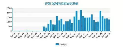 由此观察制裁前后近三年数据(2015-2017):相对于2015年伊朗原油出口量(0.8亿吨);2016年解除制裁后出口总量增加一倍,达到1.6亿吨,占全球原油出口量的6%;2017年进一步增长达到1.8亿吨,占比7%。今年截止到9月底,伊朗累计原油出口已达到1.2亿吨。